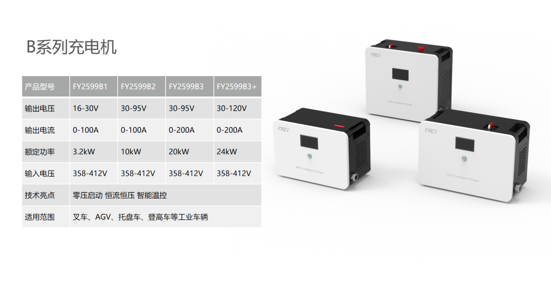 B Series: Compatible with our full range of industrial vehicle lithium-ion batteries, delivering stable and reliable performance, with customisation options available;